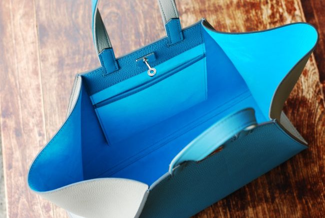 外装はドイツシュリンクの革色ジンブルー×革色グレーのツートーンに。